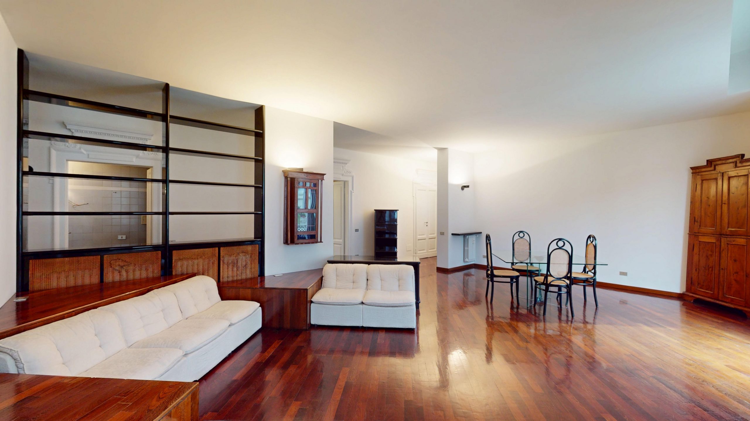• Ampio living con affacci luminosi e soffitti alti, ideale per ricevere o vivere momenti di relax;